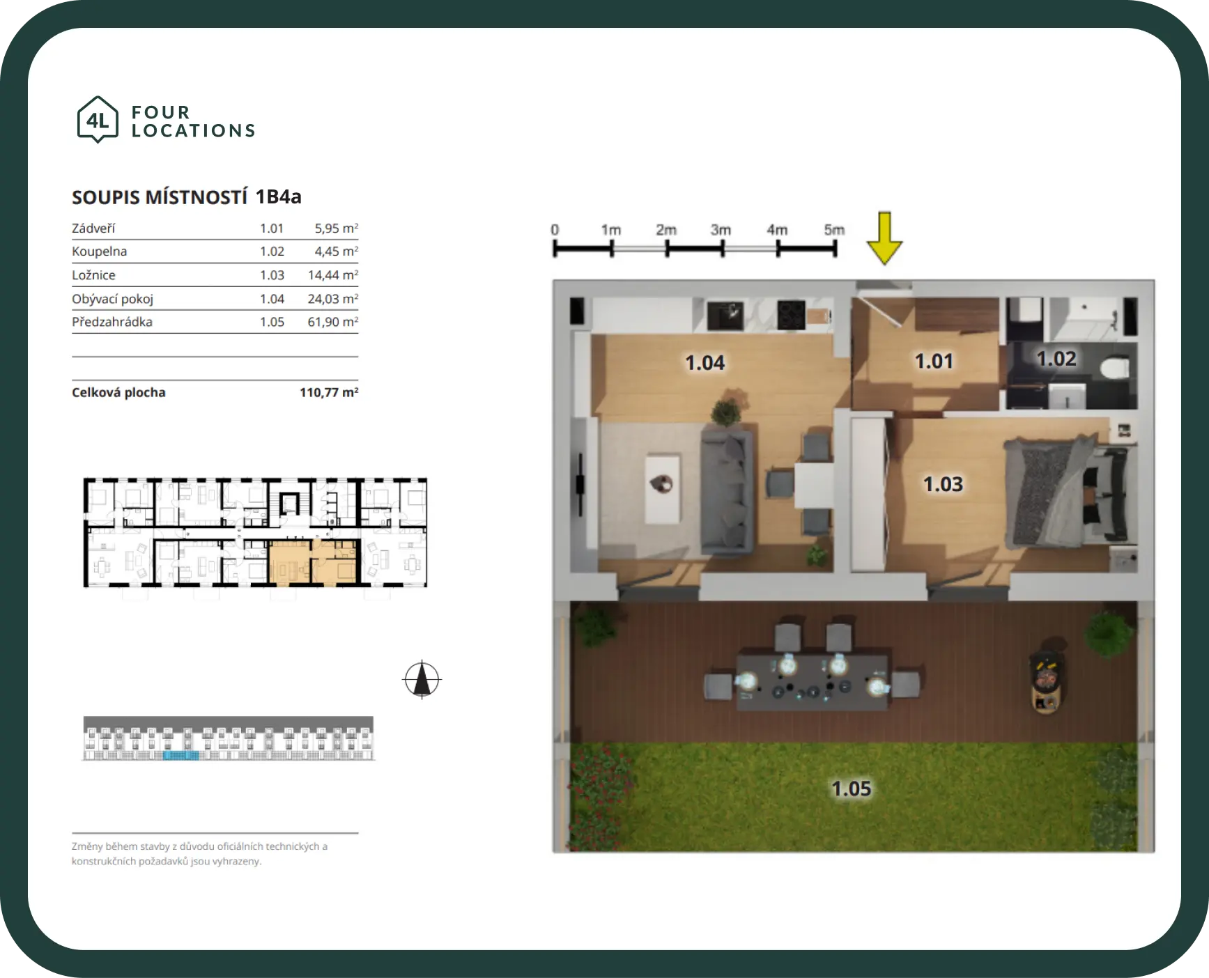 Byt 1B4a má předzahrádku o velikosti 64,40 m2.