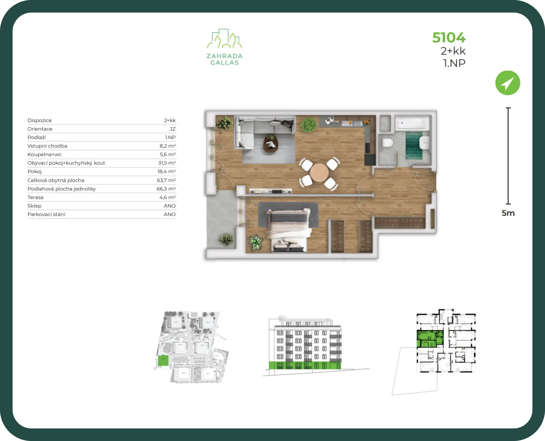 Byt disponuje sklepem a terasou o velikosti 4,6 m2