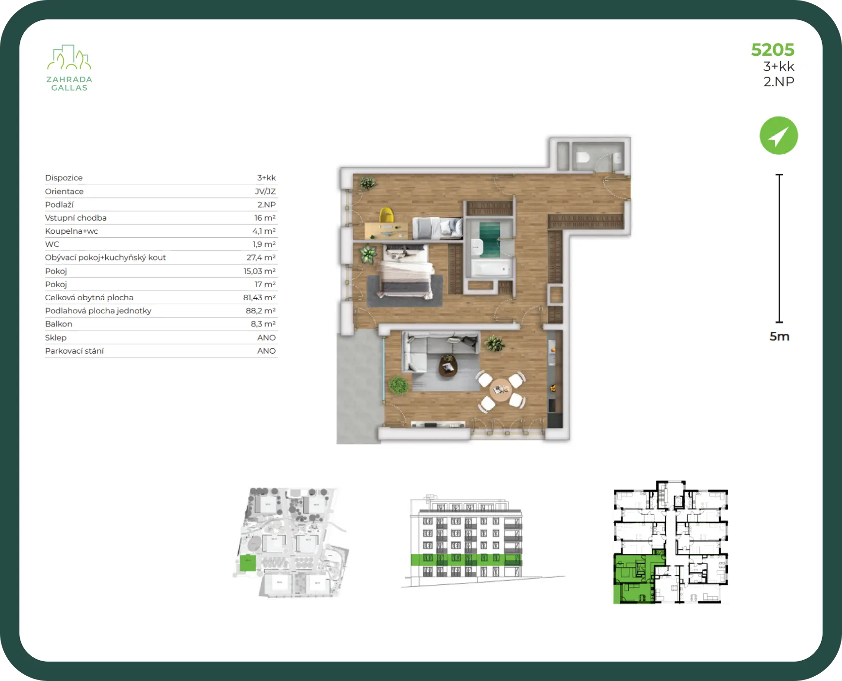 Byt disponuje sklepem a terasou o velikosti 8,30 m2