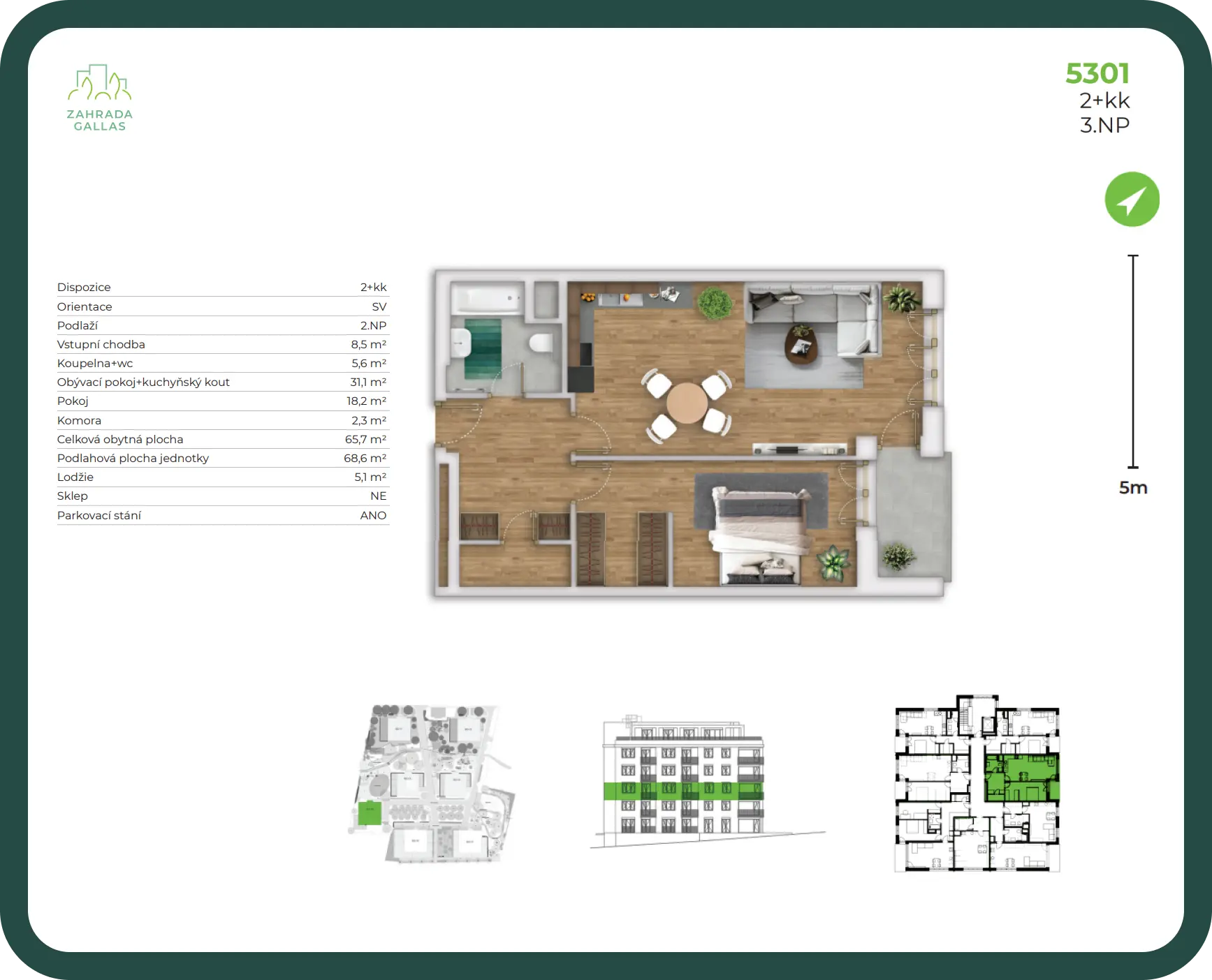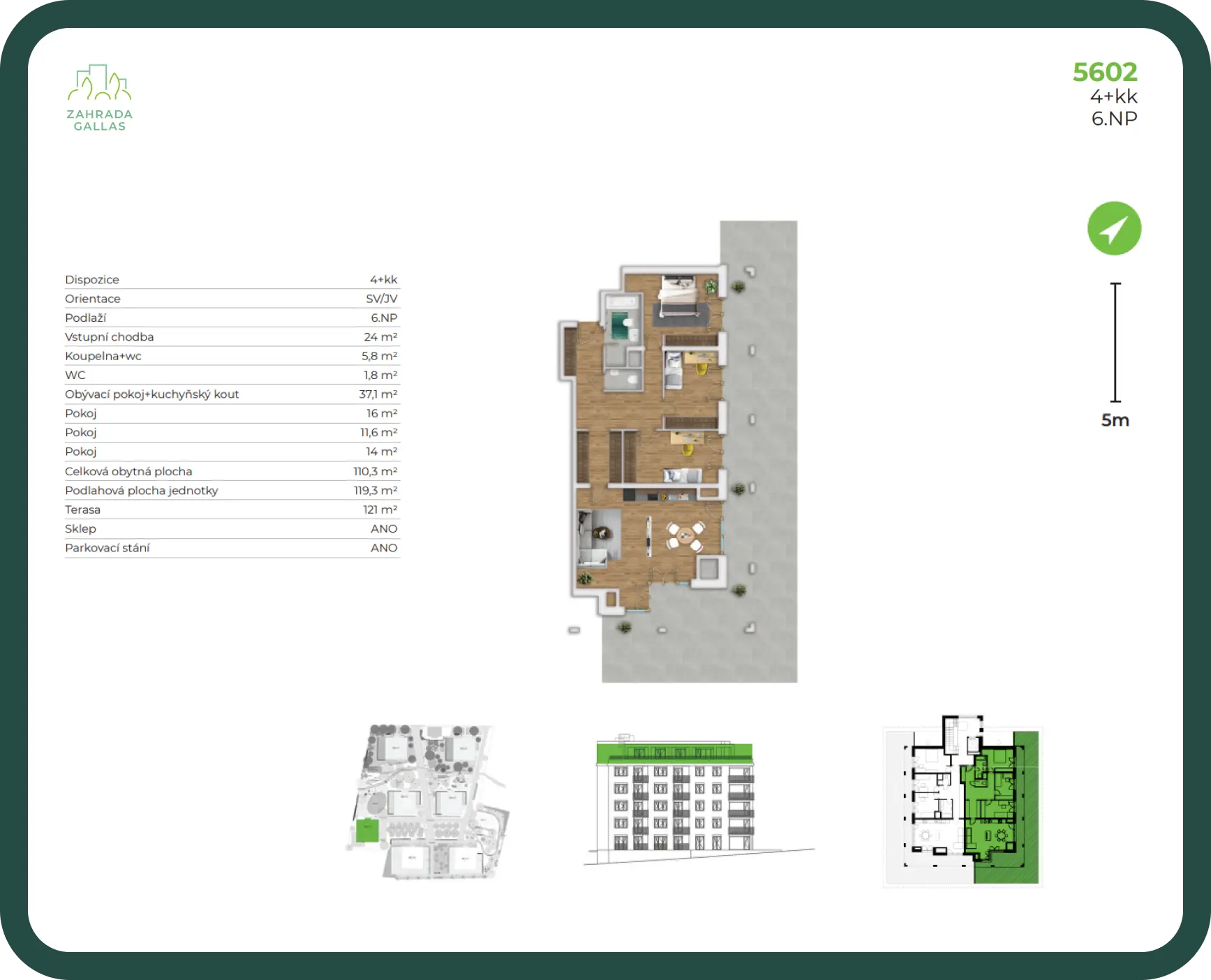 Byt disponuje terasou o velikosti 5,10 m2