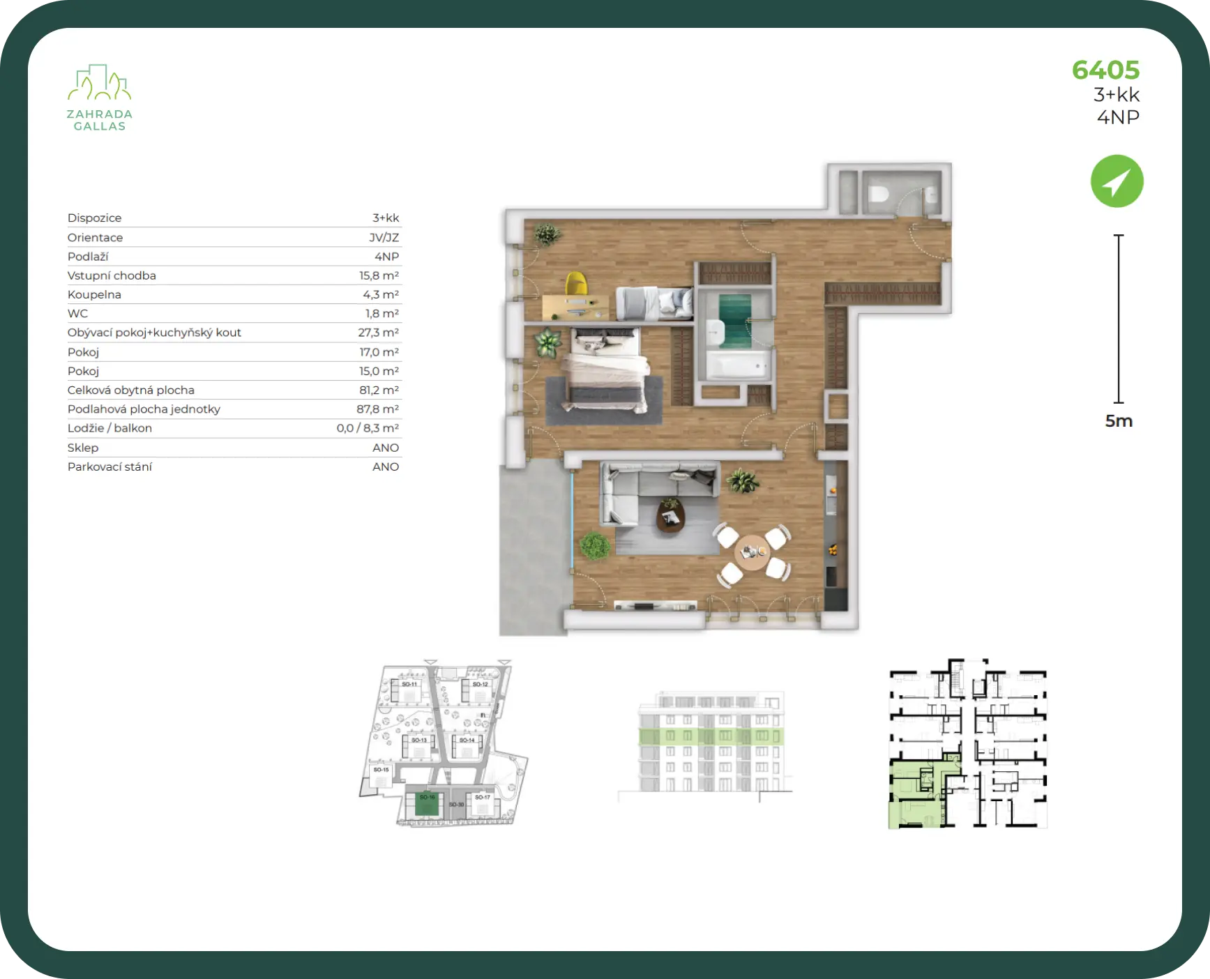Byt disponuje sklepem a terasou o velikosti 8.30 m2