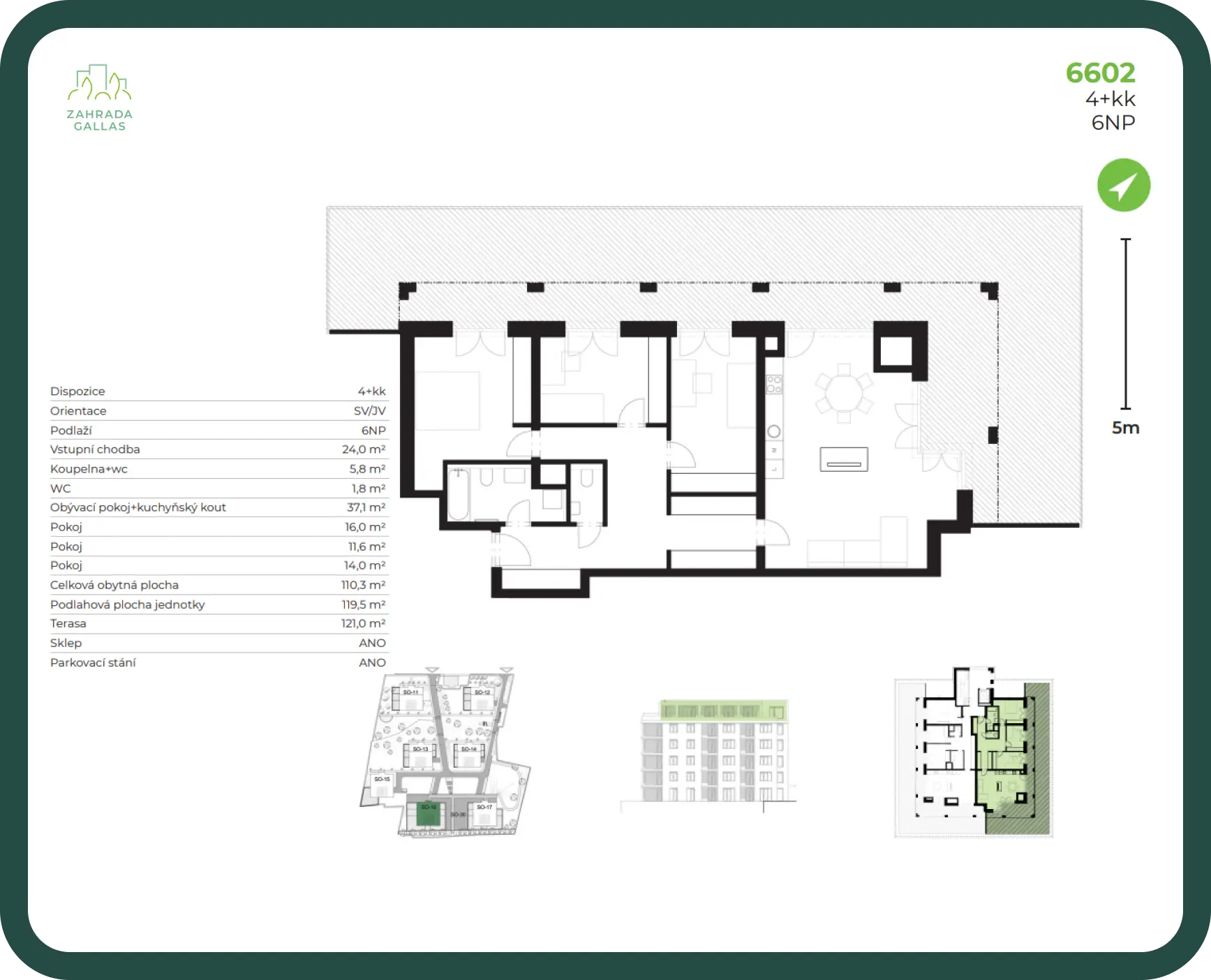 Byt disponuje sklepem a terasou o velikosti 121.00 m2