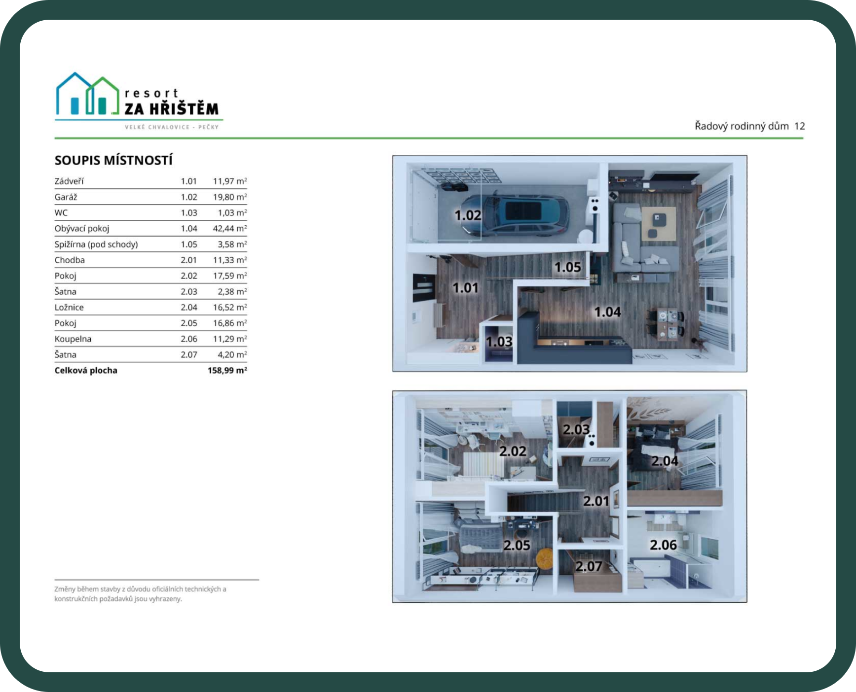 Domy disponují také vlastní garáží a parkovacím místem přímo před domem.